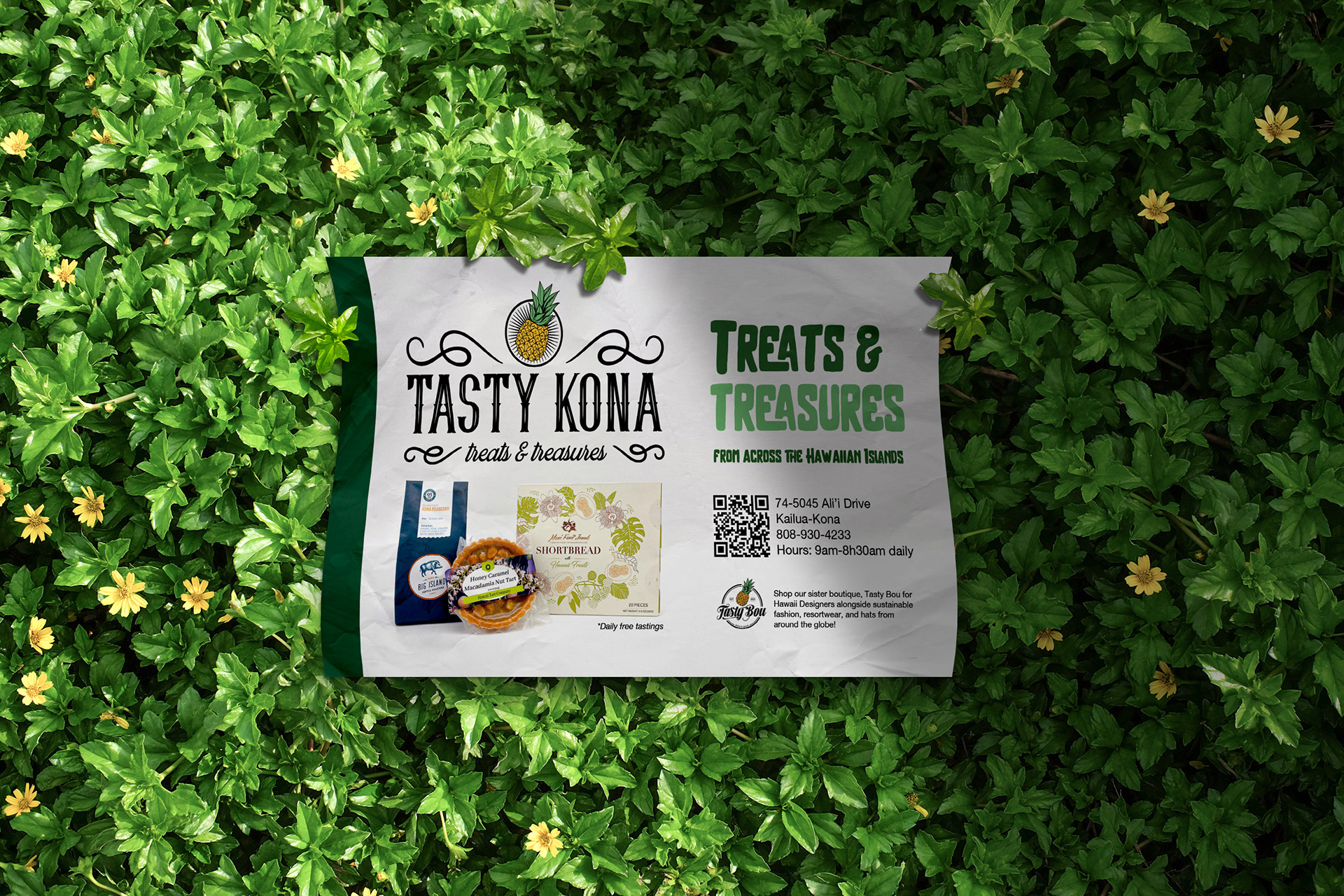 Tasty Kona needed a brand presence that could reflect their values: supporting local, celebrating community, and delivering a fun, memorable shopping experience. The goal was to translate their mission into a look across packaging, bags, and in-store materials that customers would instantly recognize and enjoy.